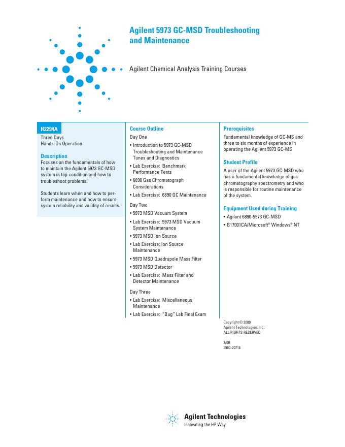 Agilent Practical 5973 GC-MSD Troubleshooting and Maintenance (H2294A) 数据手册.pdf