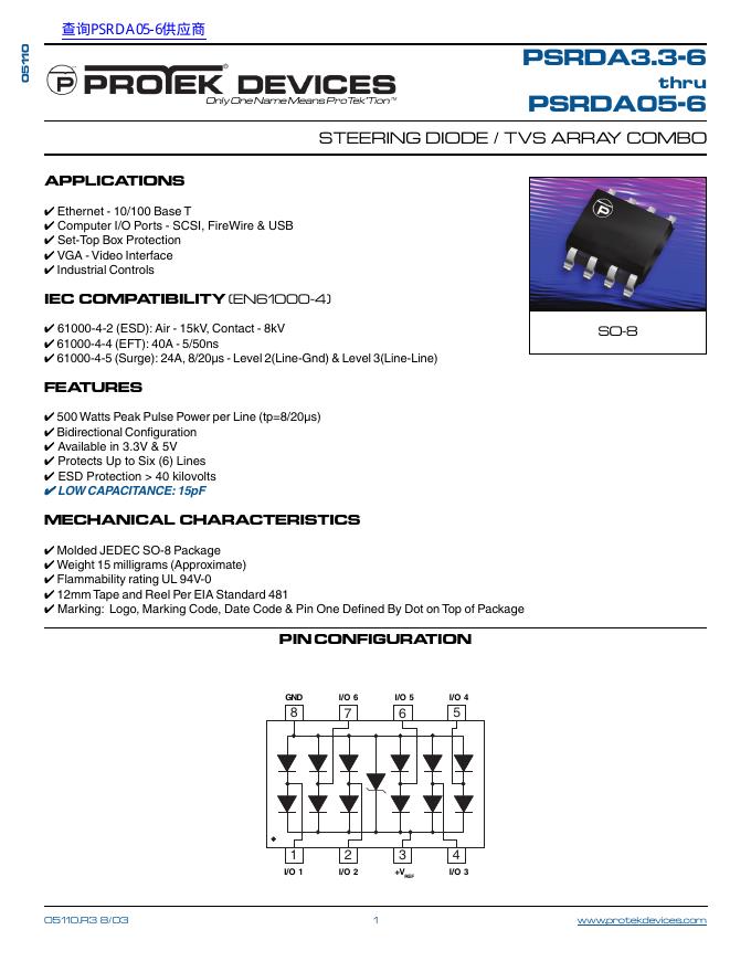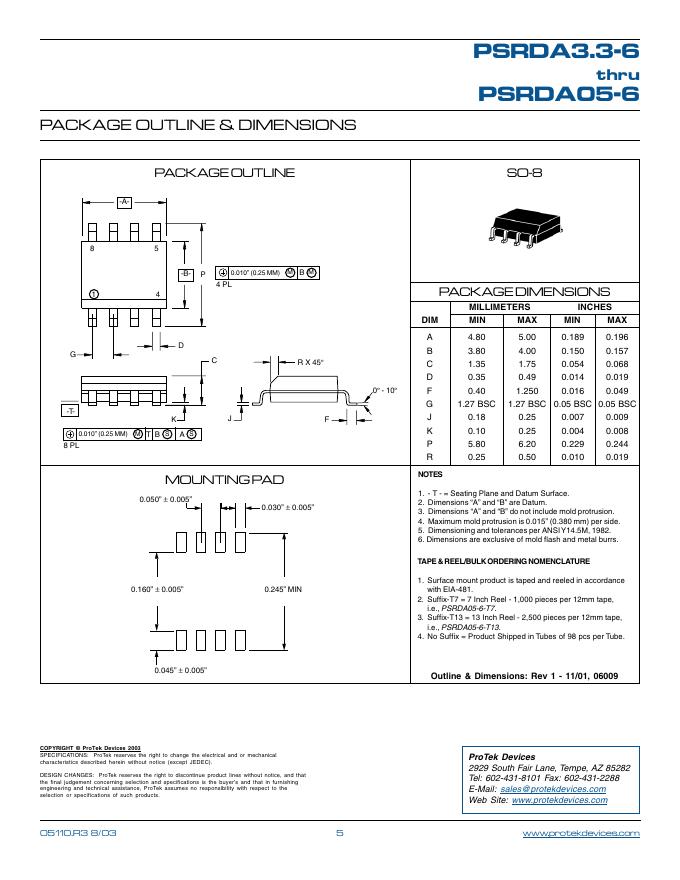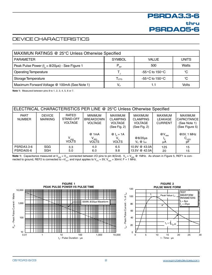 PROTEK DEVICES PSRDA3.3-6 thru PSRDA05-6 数据手册.pdf