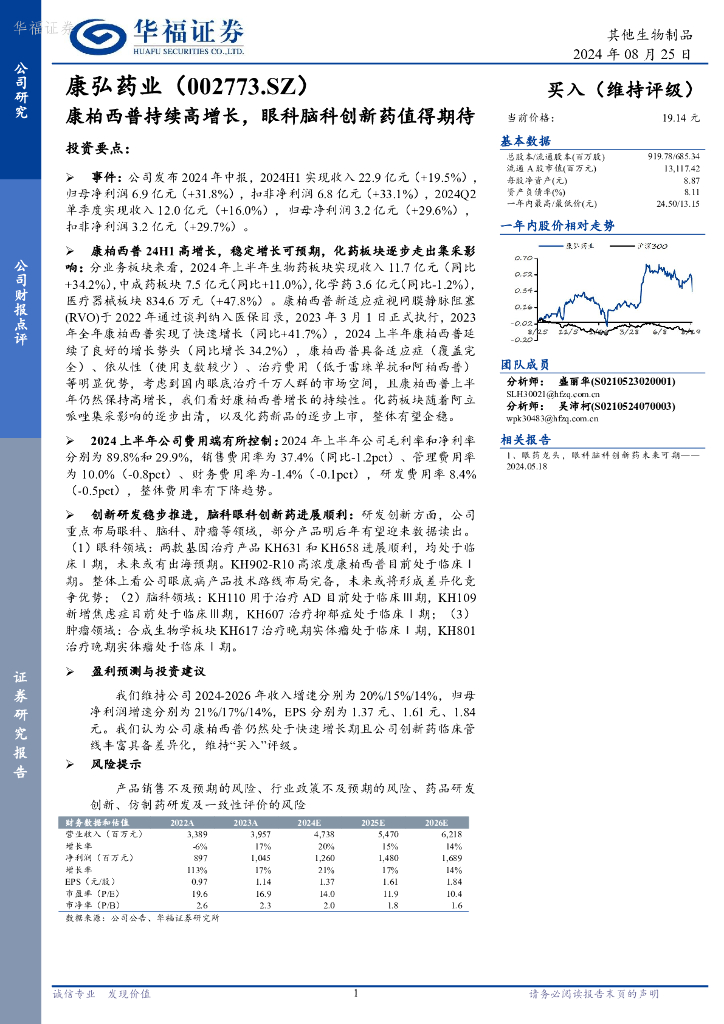华福证券:康弘药业(002773)-康柏西普持续高增长,眼科脑科创新药值得期待.pdf