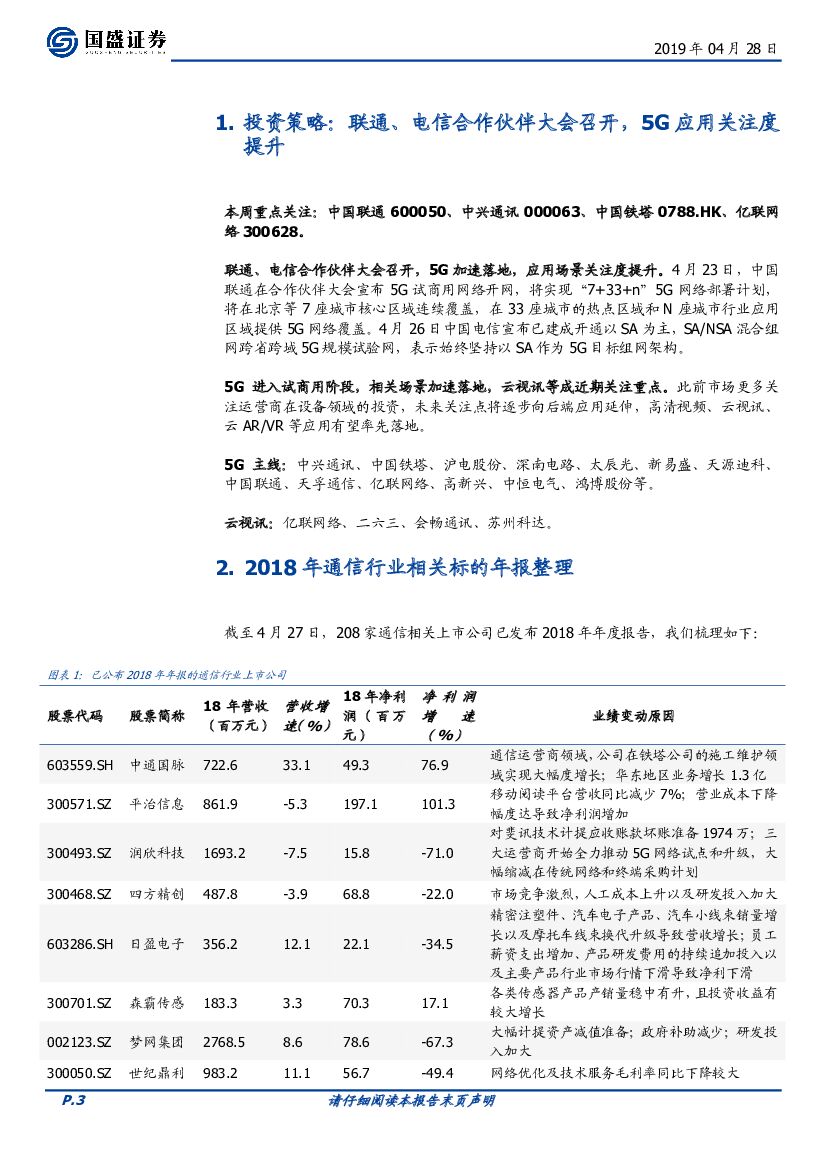 国盛证券:通信行业周报:联通、电信合作伙伴大会召开,5G应用关注度提升.pdf