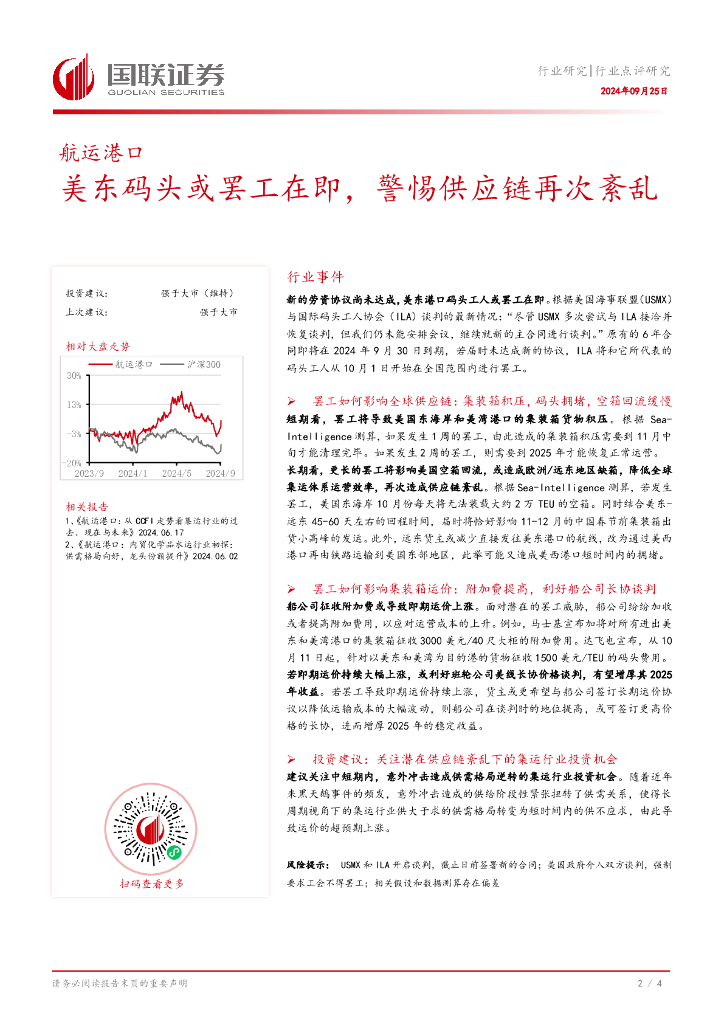 国联证券:航运港口:美东码头或罢工在即,警惕供应链再次紊乱.pdf