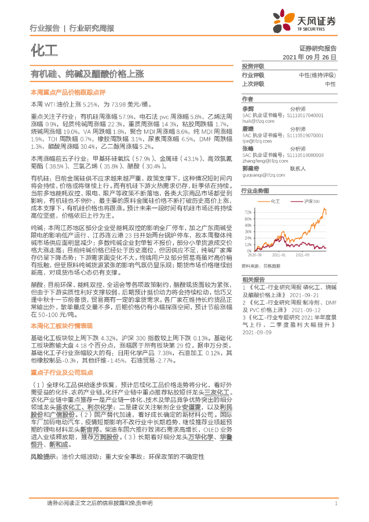 天风证券:化工行业研究周报:有机硅、纯碱及醋酸价格上涨.pdf