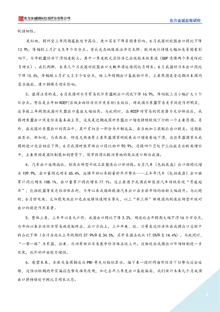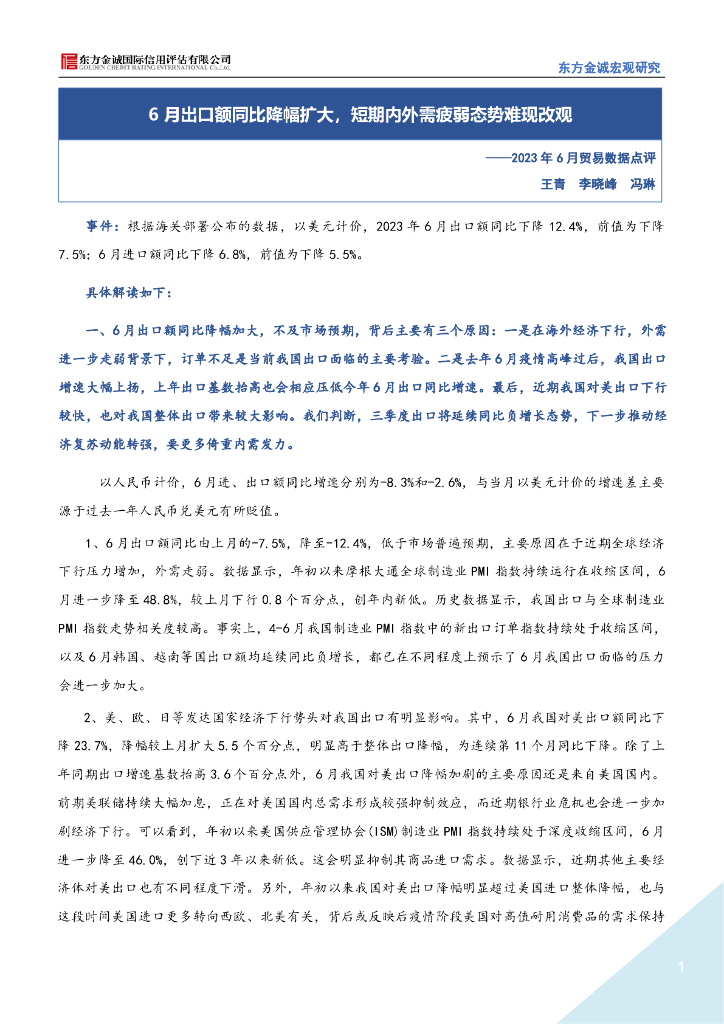 东方金诚:6月出口额同比降幅扩大,短期内外需疲弱态势难现改观——2023年6月贸易数据点评.pdf