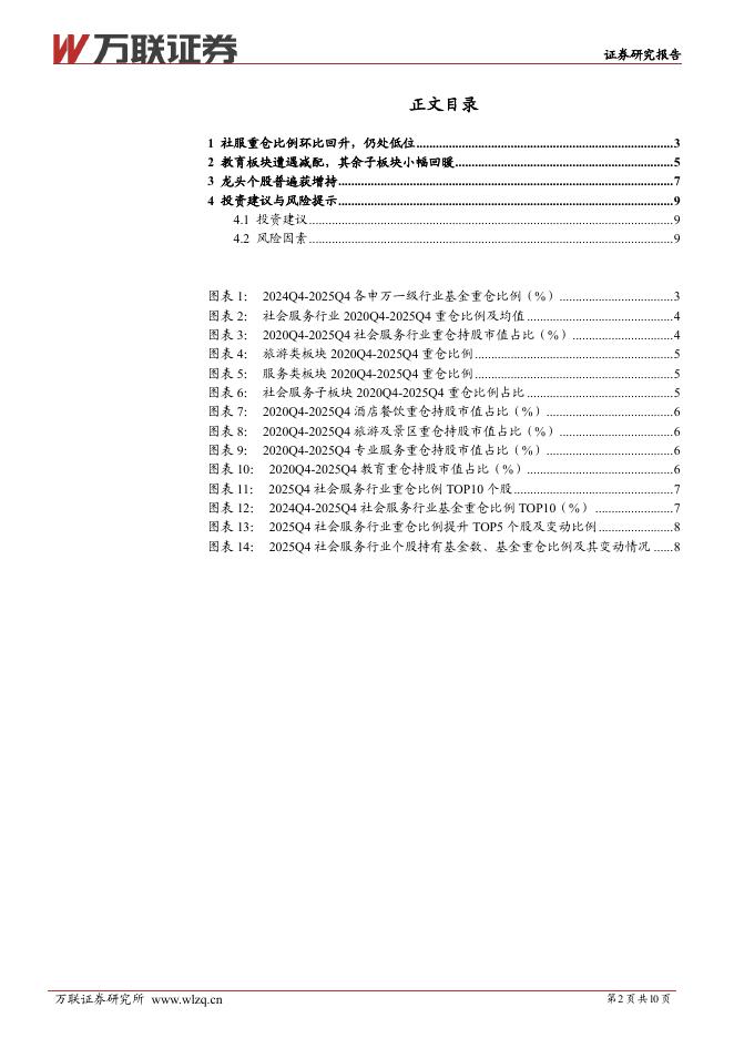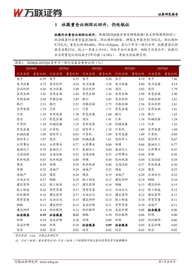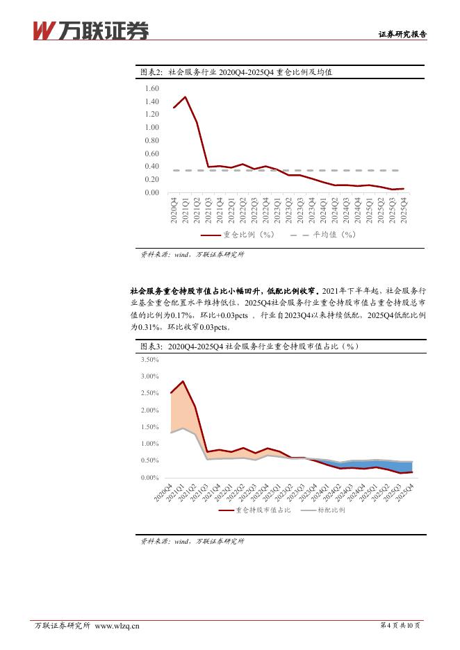 万联证券:社会服务行业2025Q4基金持仓分析报告:重仓比例环比回升,龙头个股普遍增配.pdf