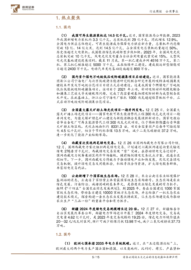 德邦证券:公用事业行业ESG周报,我国可再生能源装机达14.5亿千瓦,欧洲七国承诺2035年电力系统脱碳.pdf