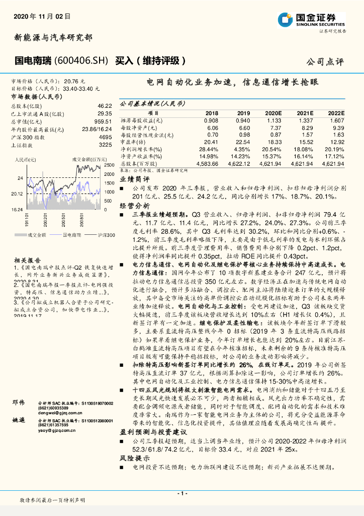 国金证券:国电南瑞(600406)-电网自动化业务加速,信息通信增长抢眼.pdf