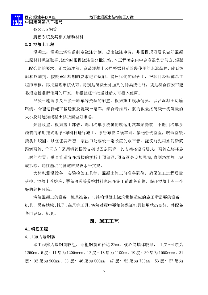 中建绿地中心超高层地下室混凝土结构施工方案(共99页).doc