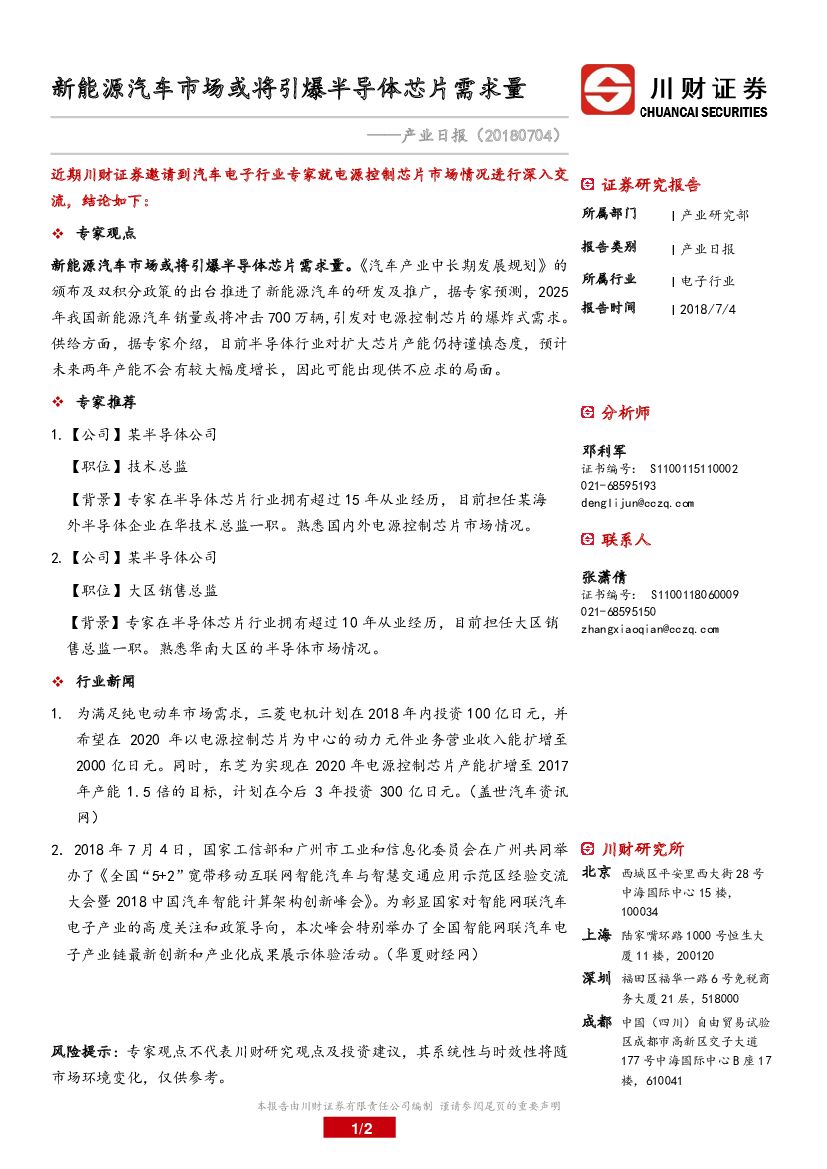 川财证券:电子行业产业日报:新能源汽车市场或将引爆半导体芯片需求量.pdf