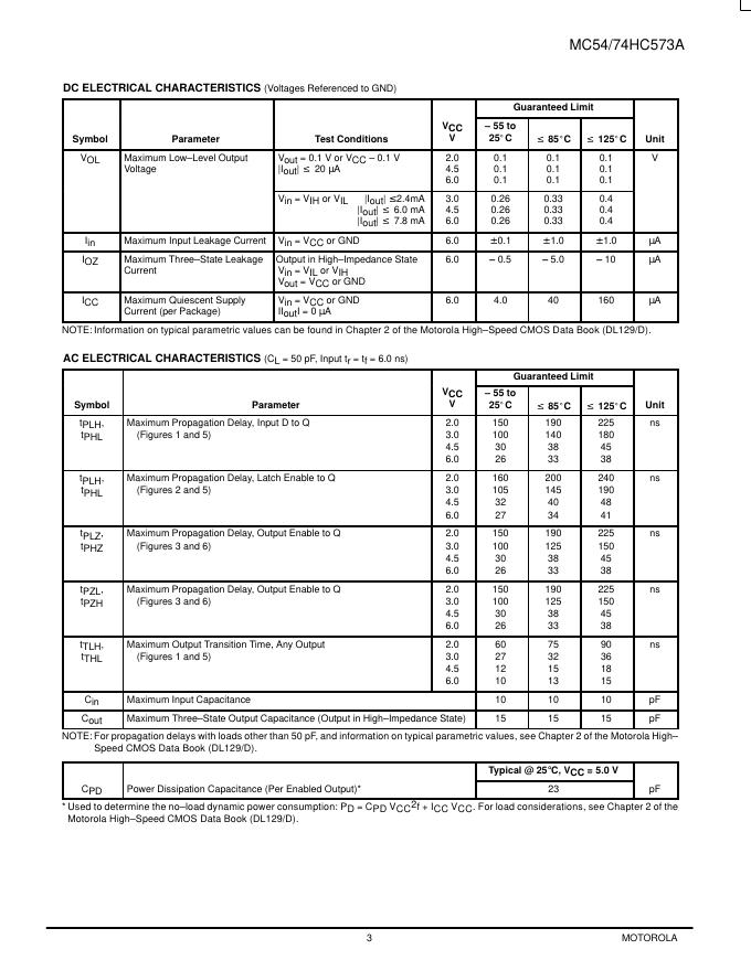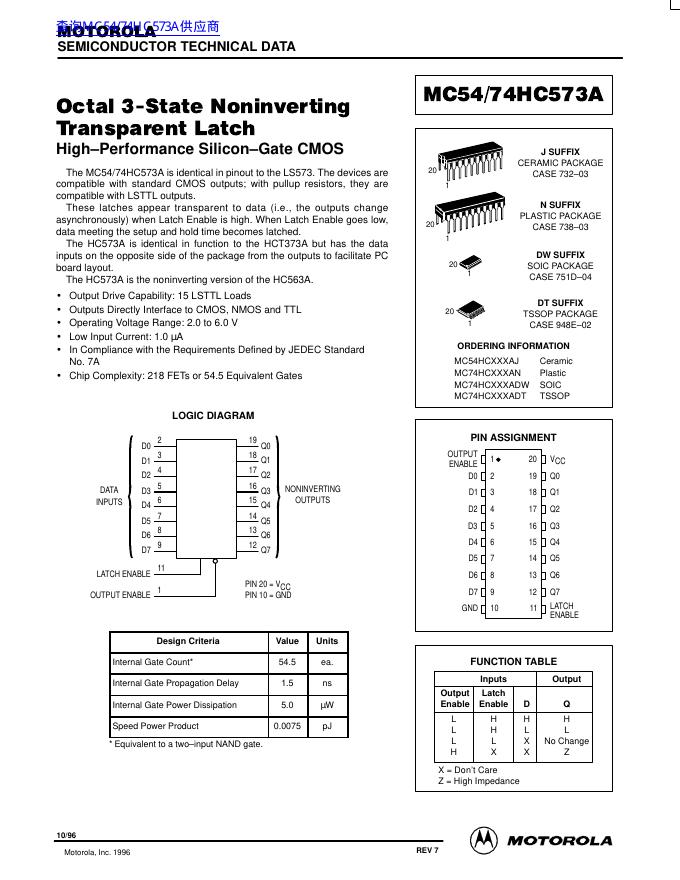MOTOROLA SEMICONDUCTOR MC54/74HC573A 数据手册.pdf