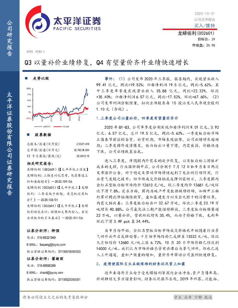 太平洋证券:龙蟒佰利(002601)-Q3以量补价业绩修复,Q4有望量价齐升业绩快速增长.pdf