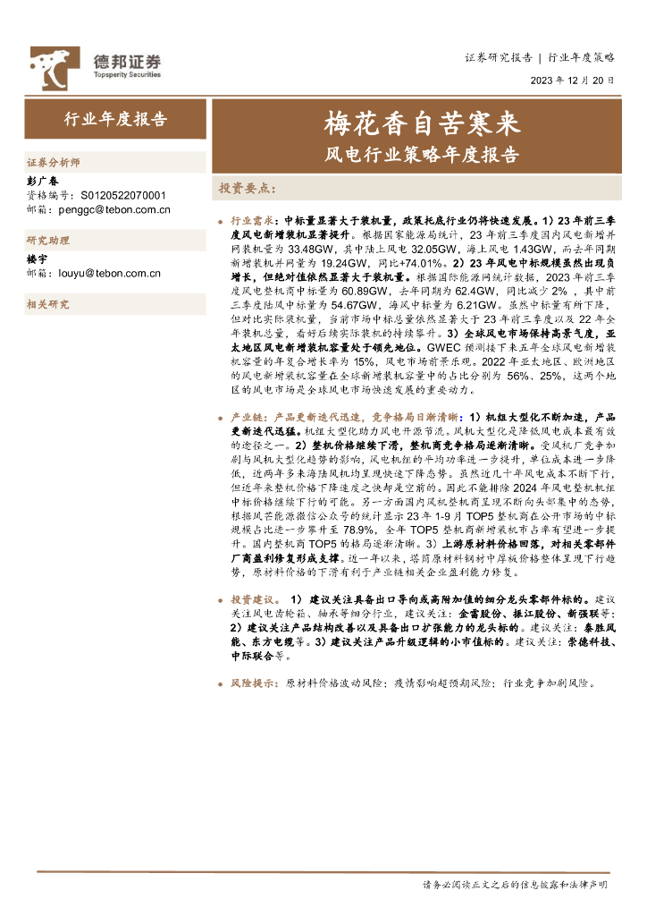 德邦证券:风电行业策略年度报告:梅花香自苦寒来.pdf