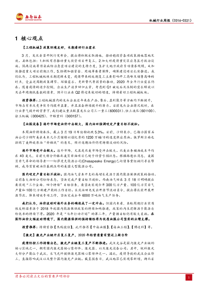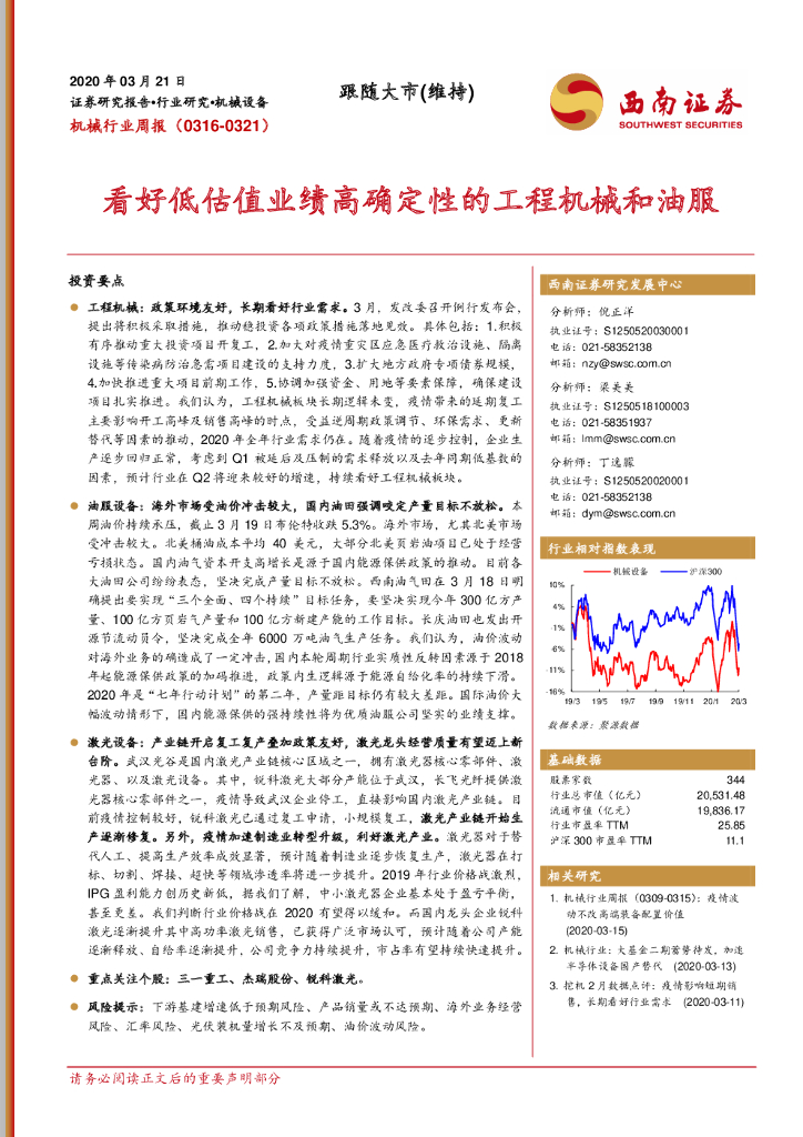 西南证券:机械行业周报:看好低估值业绩高确定性的工程机械和油服.pdf