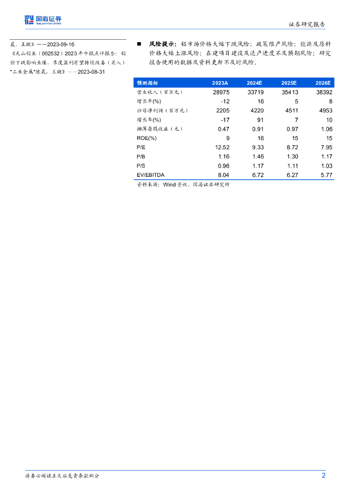国海证券:天山铝业(002532)-2024年三季报点评:铝价下跌影响Q3业绩,Q4业绩有望向好.pdf