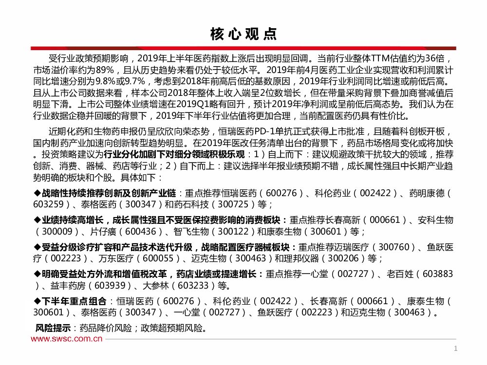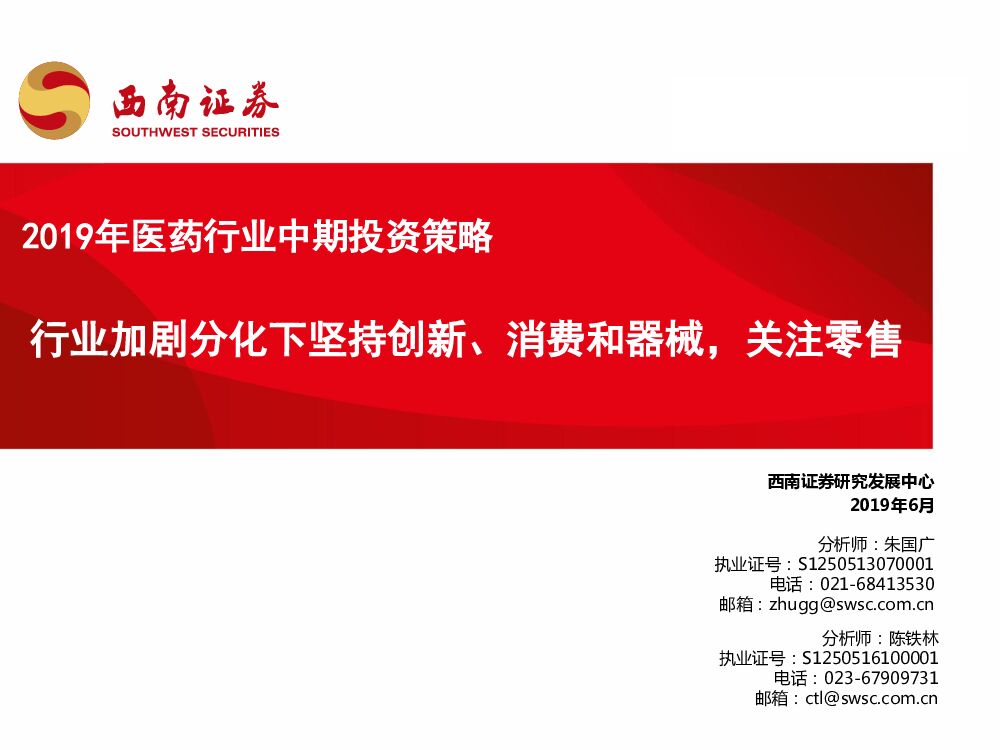 西南证券:2019年医药行业中期投资策略:行业加剧分化下坚持创新、消费和器械,关注零售.pdf