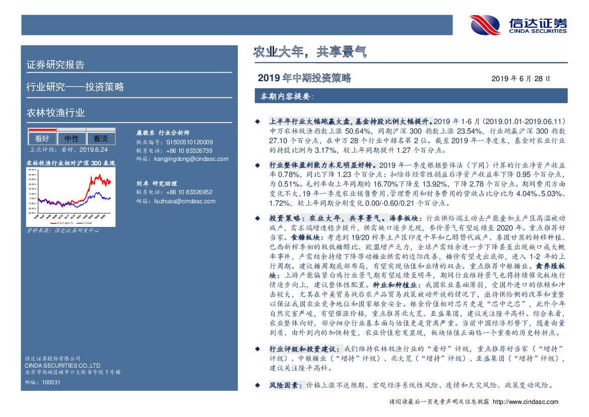 信达证券:农林牧渔行业19年中期投资策略:农业大年,共享景气.pdf
