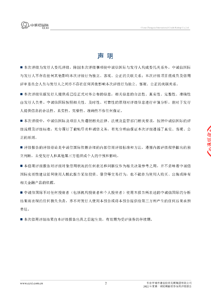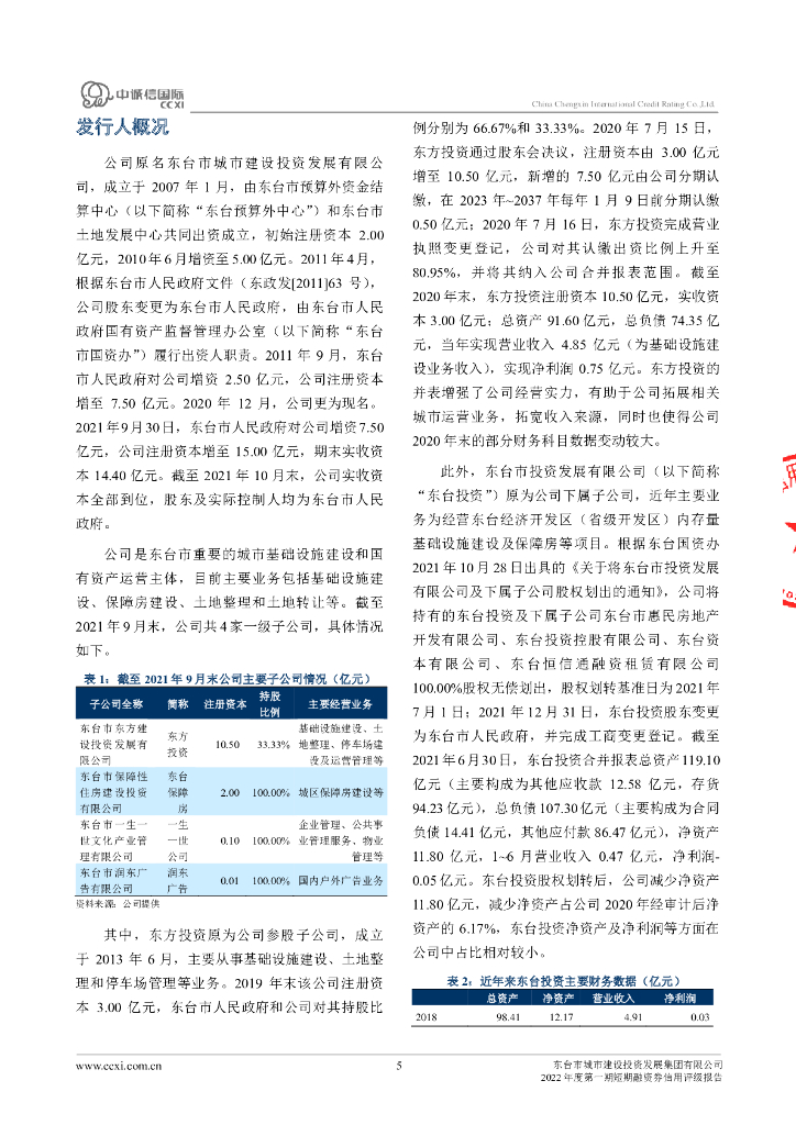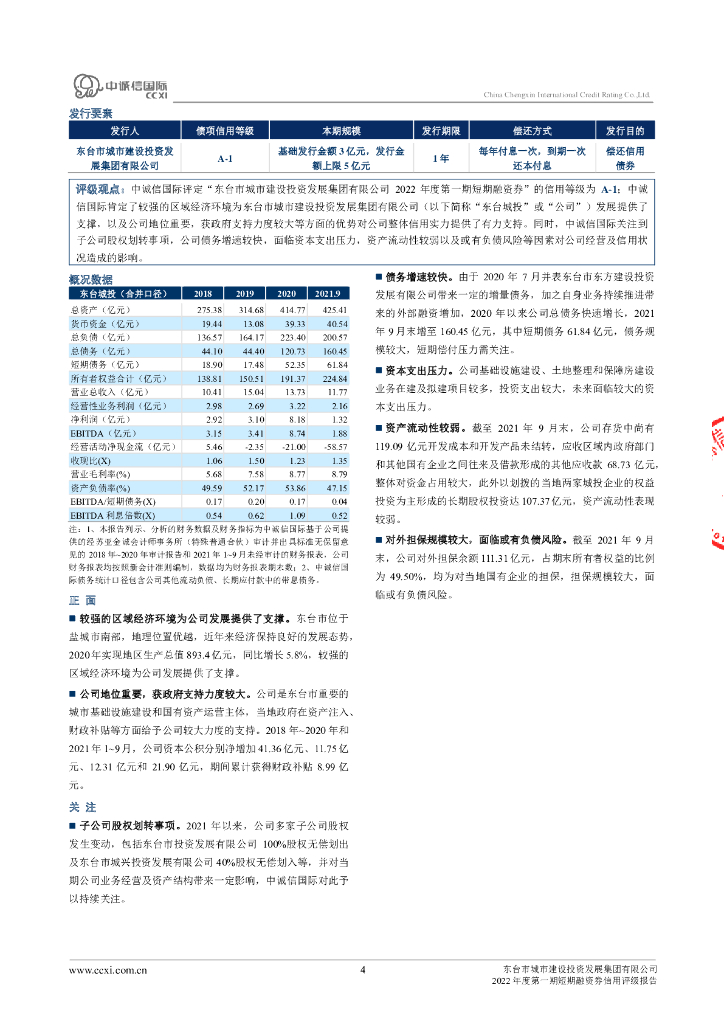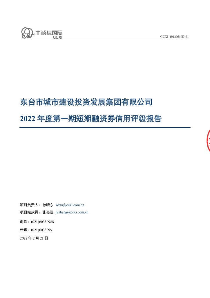 中诚信:东台市城市建设投资发展集团有限公司2022年度第一期短期融资券债项信用评级报告及跟踪评级安排.pdf