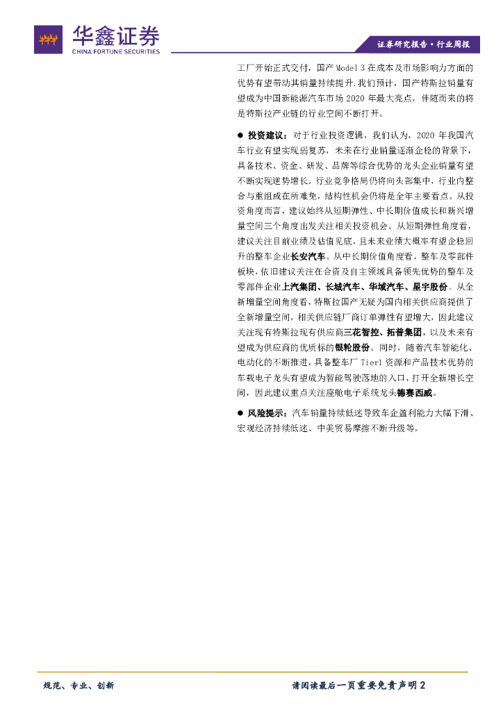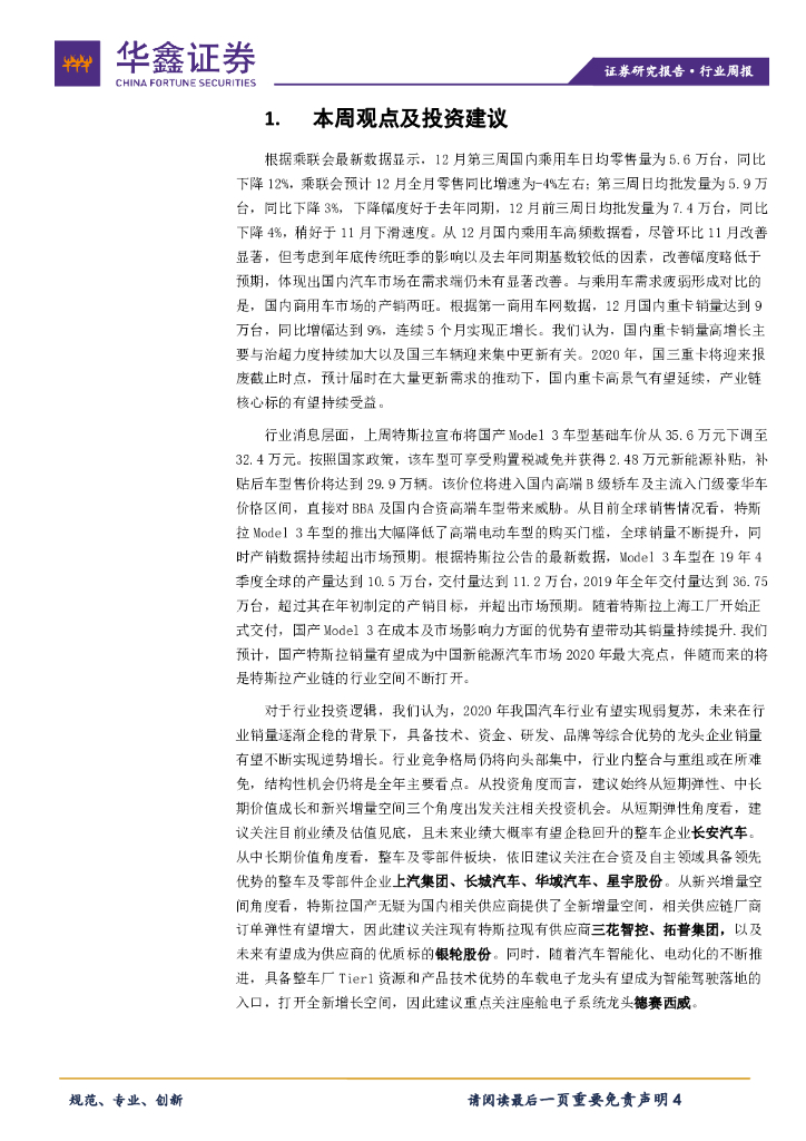华鑫证券:汽车行业周报:国产特斯拉销量有望成为2020年国内新能源汽车市场最大看点.pdf