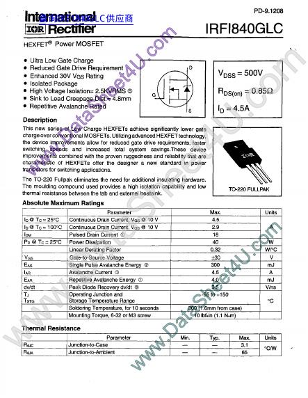 international IOR rectifier IRFI840GLC 数据手册.pdf