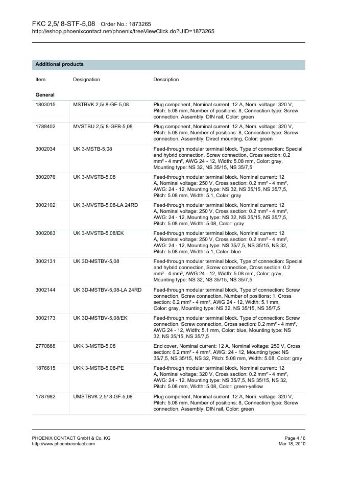 PHOENIX CONTACT FKC 2,5/ 8-STF-5,08 Order No.: 1873265 The figure shows a 10-position version of the product 数据手册.pdf
