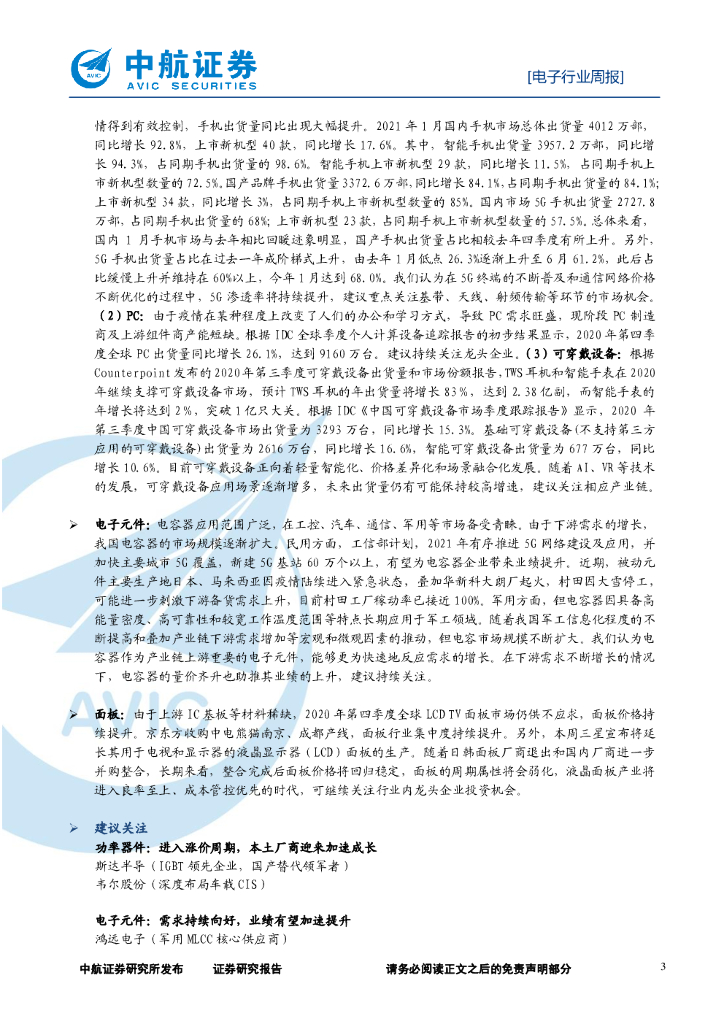 中航证券:电子行业周报:中国信通院发布《2021年1月国内手机市场运行分析报告》,5G渗透率有望持续提升.pdf