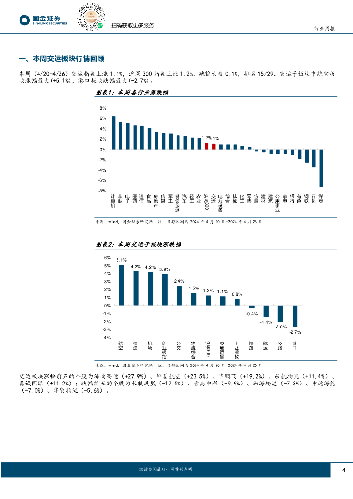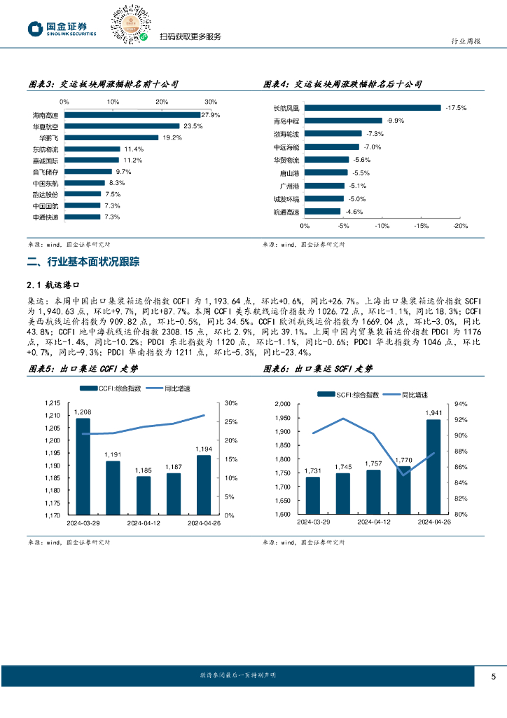 国金证券:交通运输仓储行业周报:多家快递物流公司业绩增长,外贸集运运价环比上升.pdf