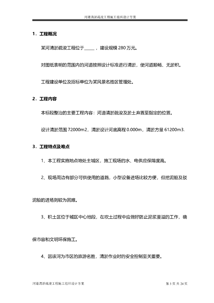 河道清淤疏浚工程施工组织设计方案汇总word版(共20页).doc