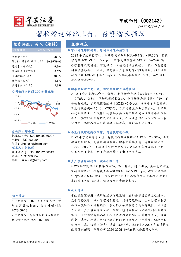华安证券:宁波银行(002142)-营收增速环比上行,存贷增长强劲.pdf