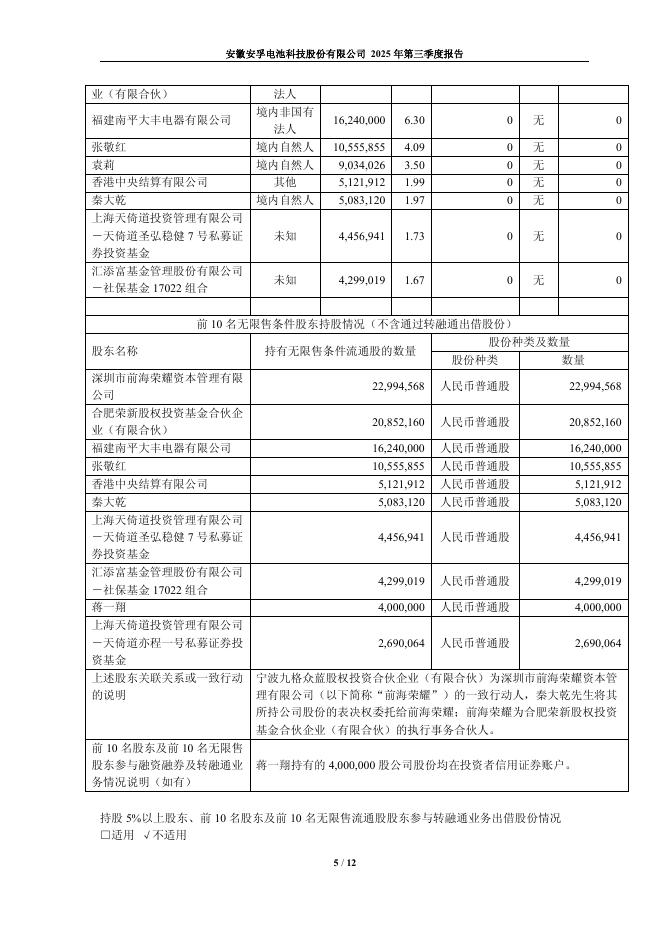 603031-安孚科技:安徽安孚电池科技股份有限公司2025年第三季度报告.pdf