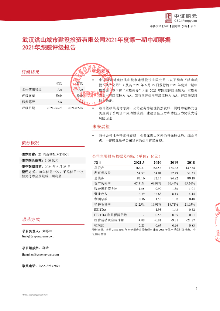 鹏元:武汉洪山城市建设投资有限公司主体及跟踪评级报告.pdf
