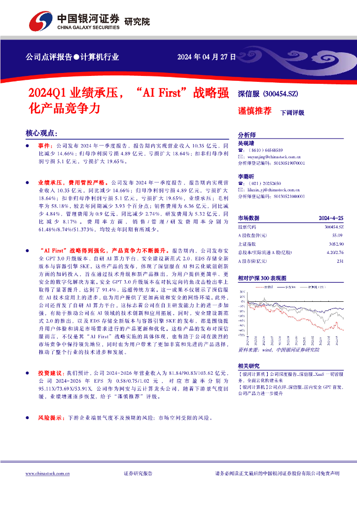 中国银河:深信服(300454)-2024Q1业绩承压,“AIFirst”战略强化产品竞争力.pdf