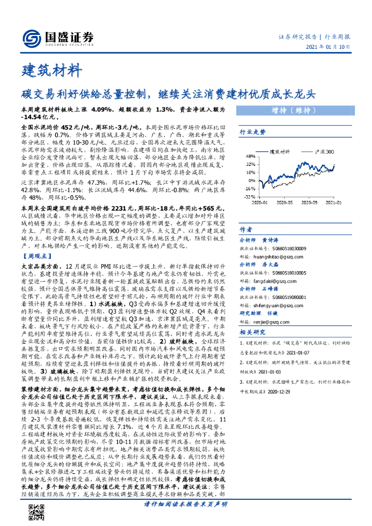 国盛证券:建筑材料行业周报:碳交易利好供给总量控制,继续关注消费建材优质成长龙头.pdf