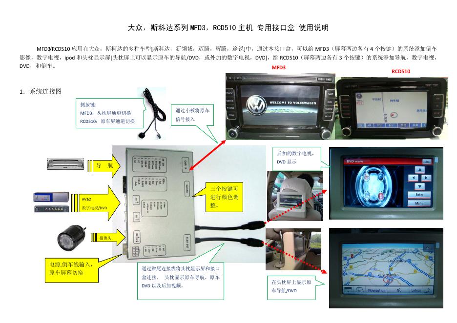 大众 斯科达系列mfd3rcd510主机专用接口盒 使用.pdf