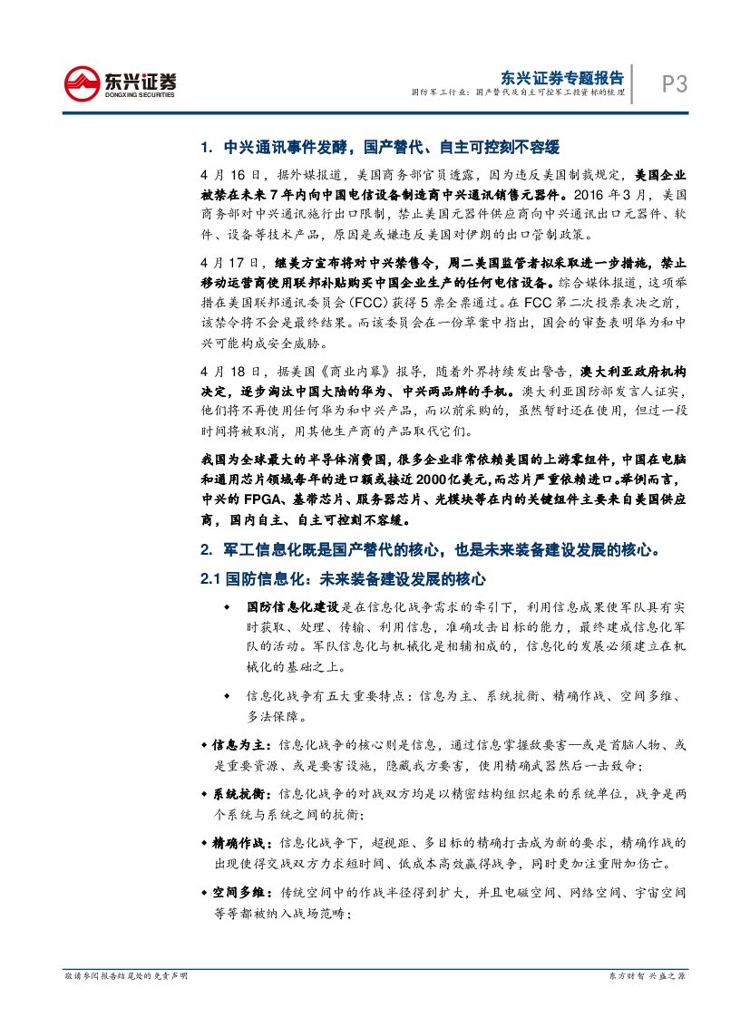 东兴证券:国防军工行业专题报告:国产替代及自主可控军工投资标的梳理.pdf