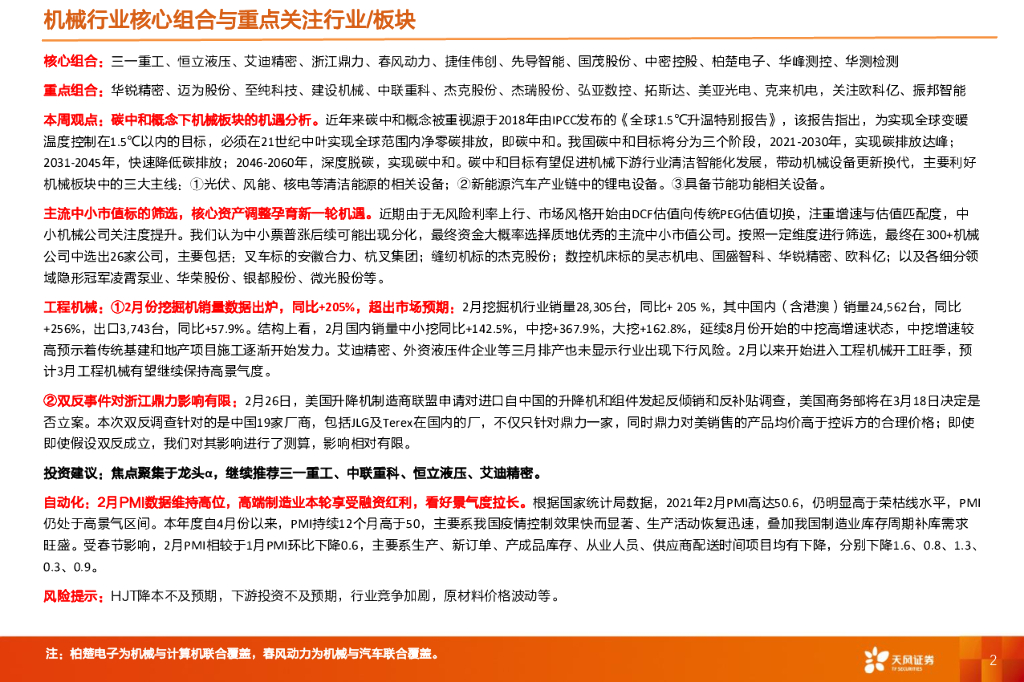 天风证券:机械设备行业研究周报:碳中和政策利好机械多板块,机械核心资产显现全球化估值竞争力.pdf