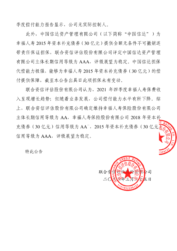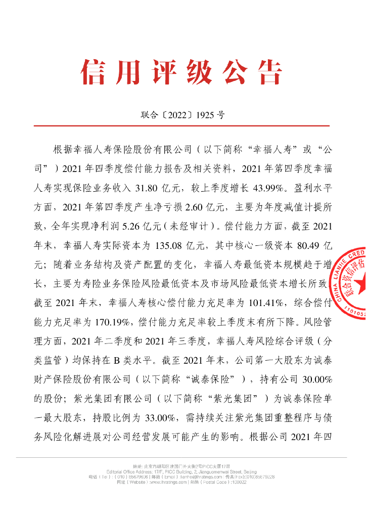 联合资信:幸福人寿保险股份有限公司季度跟踪评级公告.pdf