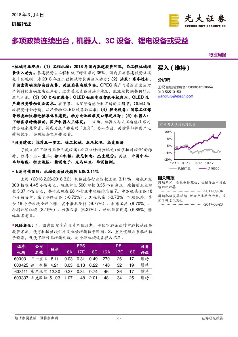 光大证券:机械行业周报:多项政策连续出台,机器人、3C设备、锂电设备或受益.pdf