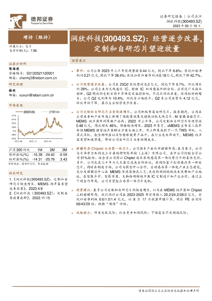德邦证券:润欣科技(300493)-经营逐步改善,定制和自研芯片望迎放量.pdf