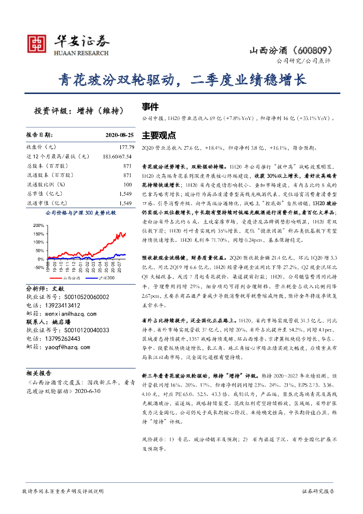华安证券:山西汾酒(600809)-青花玻汾双轮驱动,二季度业绩稳增长.pdf