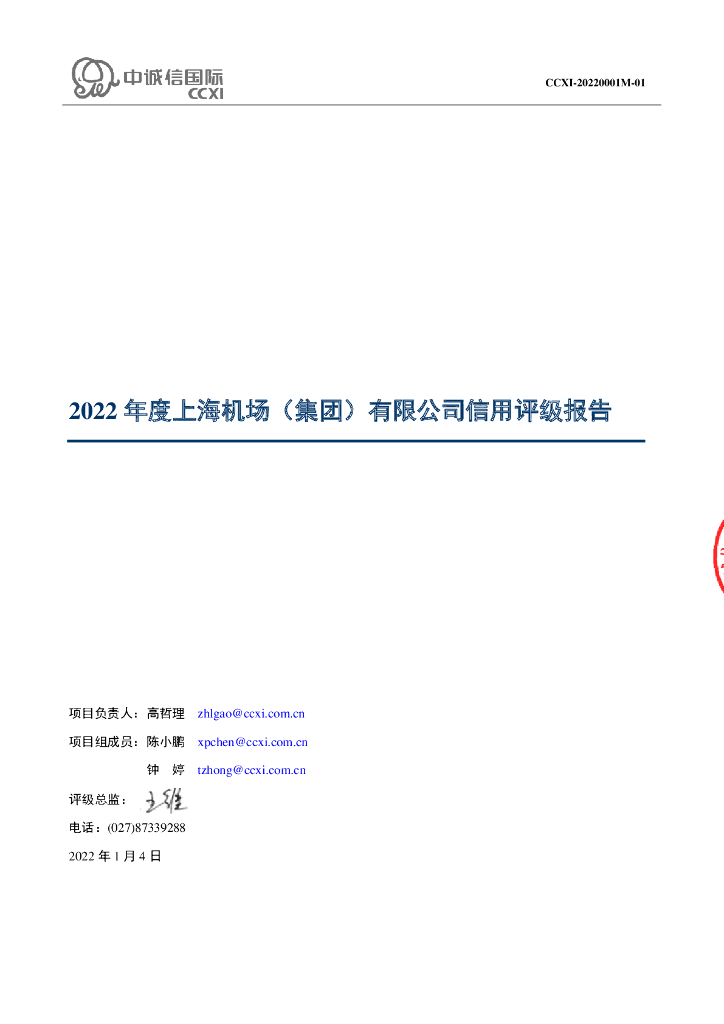 中诚信:上海机场(集团)有限公司信用评级报告及跟踪评级安排.pdf