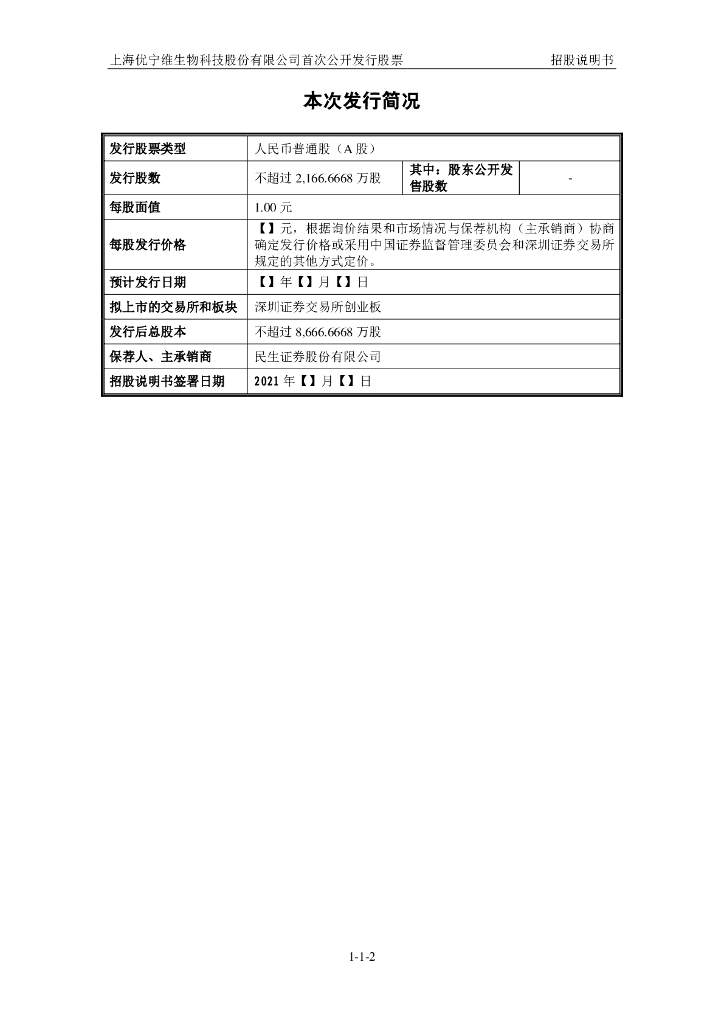 上海优宁维生物科技股份有限公司深交所创业板IPO上市招股说明书.pdf