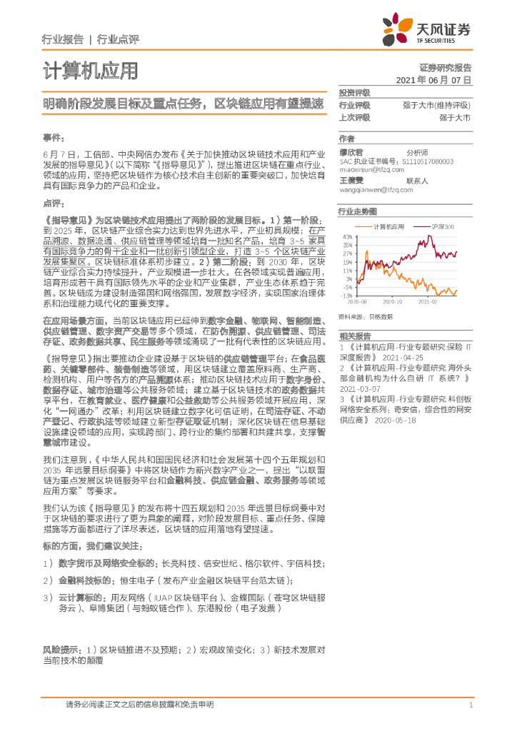 天风证券:计算机应用行业点评:明确阶段发展目标及重点任务,区块链应用有望提速.pdf