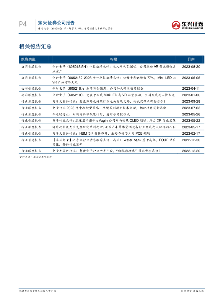 东兴证券:伟时电子(605218)-公司2023年三季报业绩点评:收入增长9.79%,布局轻量化车载新型显示.pdf