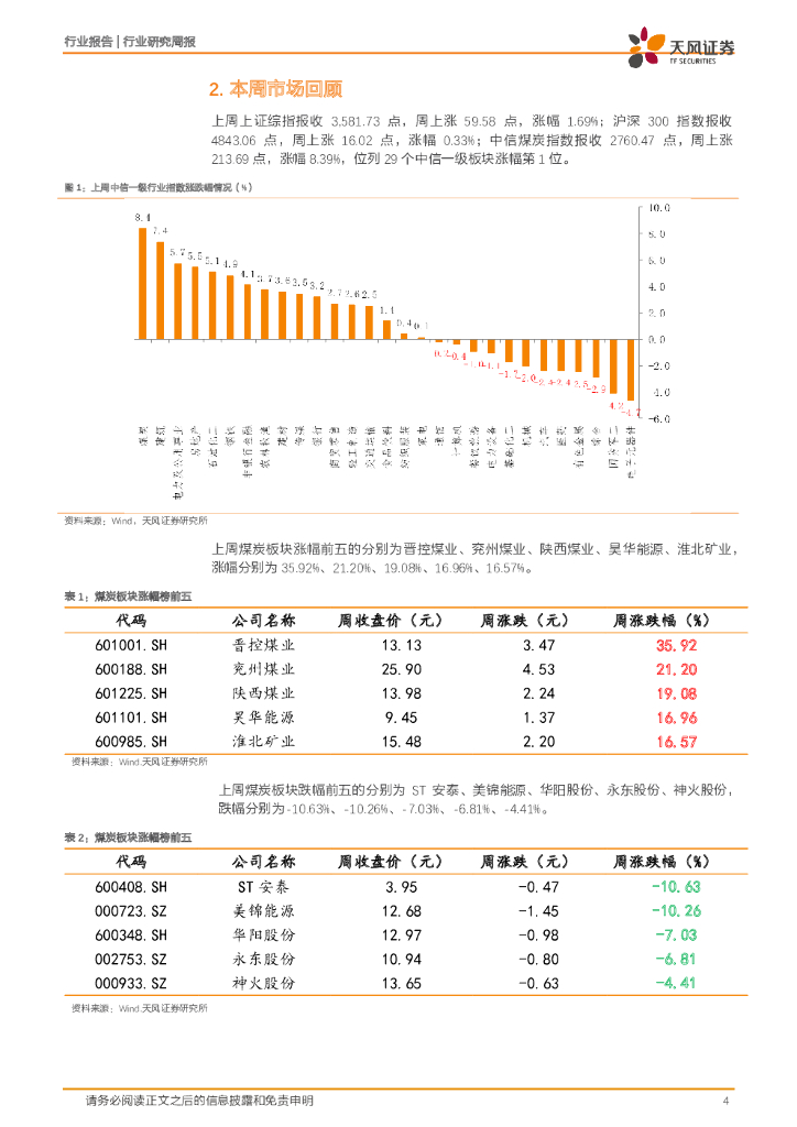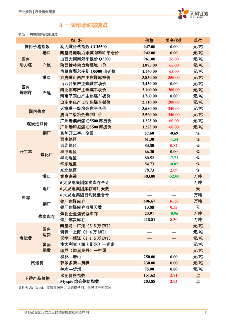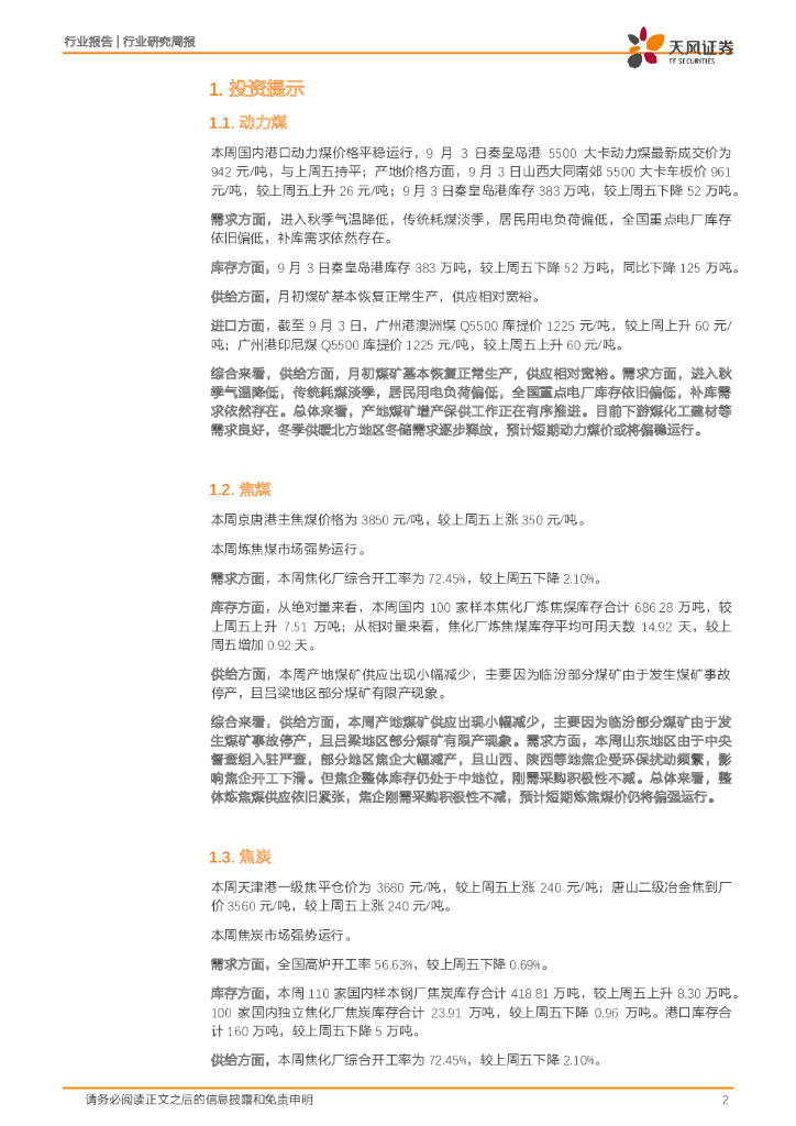 天风证券:煤炭开采:一周煤炭动向:产地供给扰动不断,双焦价格持续强势.pdf