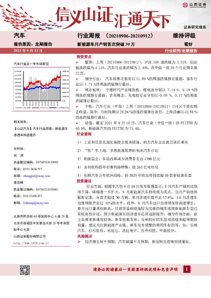 山西证券:汽车行业周报:新能源车月产销首次突破30万.pdf