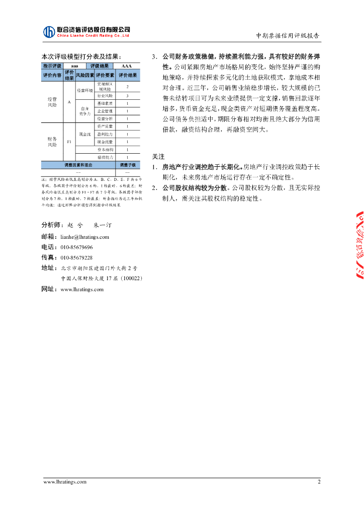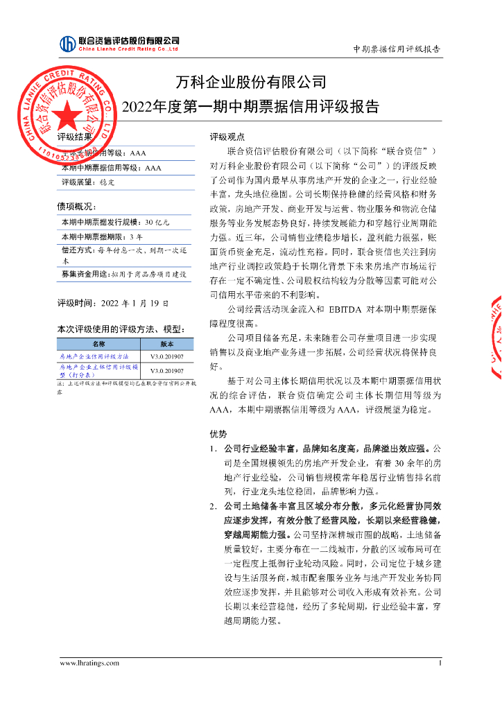 联合资信:万科企业股份有限公司2022年度第一期中期票据信用评级报告及跟踪评级安排.pdf