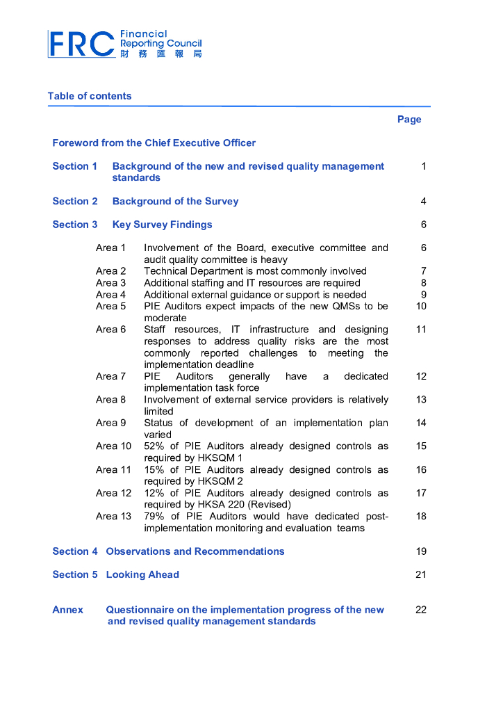 AFRC会计及财务汇报局:2022公众利益实体核数师就新增和经修订质素管理准则实施进度的调​查结果(英文版).pdf