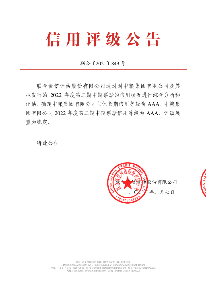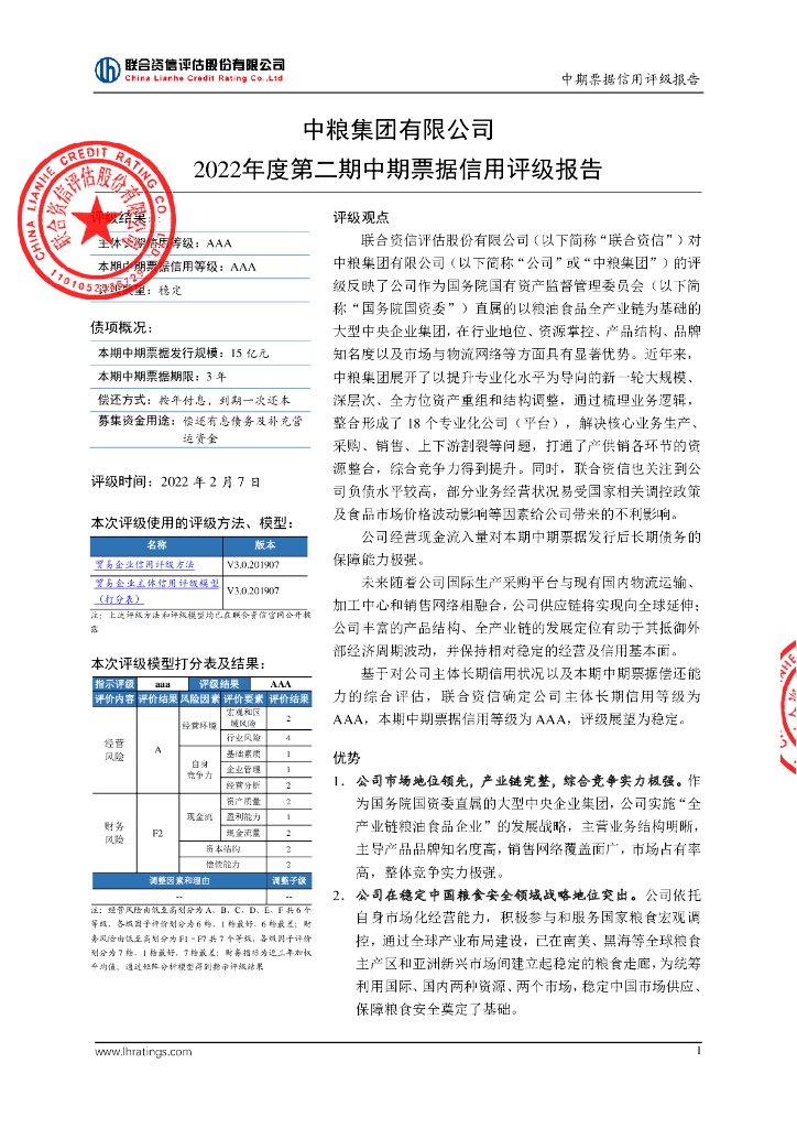 联合资信:中粮集团有限公司2022年度第二期中期票据信用评级报告.pdf