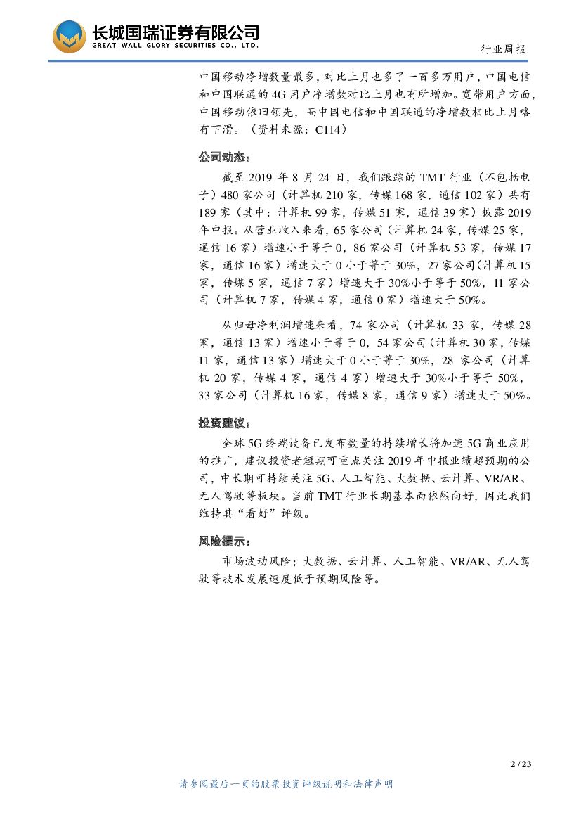 长城国瑞证券:TMT行业双周报2019年第17期(总第76期):全球5G终端设备发布数量已达100款,中国电信移动用户数首超中国联通.pdf