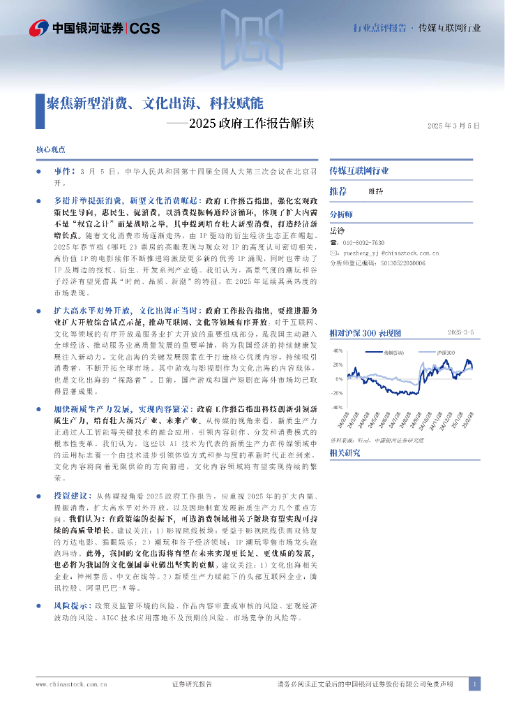 中国银河:传媒互联网行业:2025政府工作报告解读-聚焦新型消费、文化出海、科技赋能.pdf
