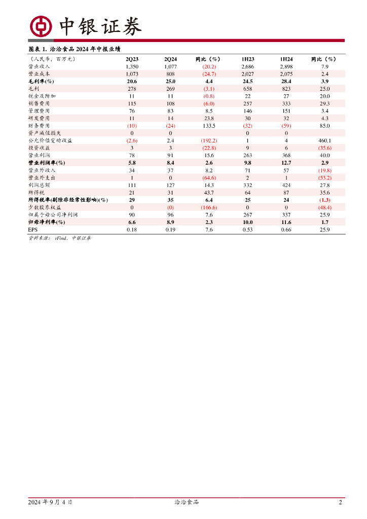 中银证券:洽洽食品(002557)-2Q24营收承压,成本红利持续兑现.pdf